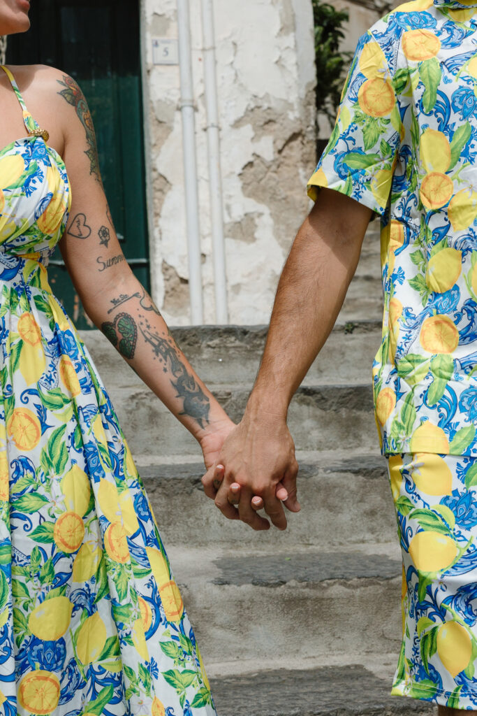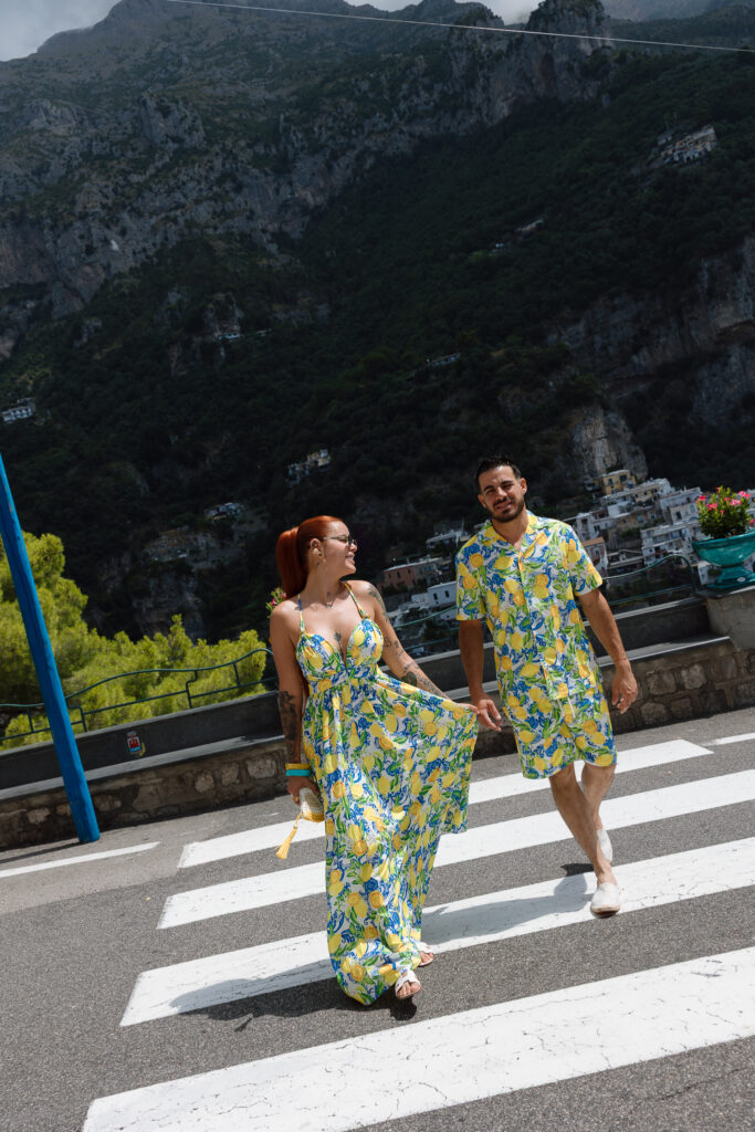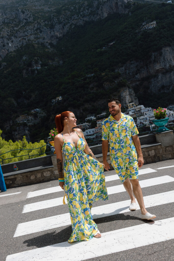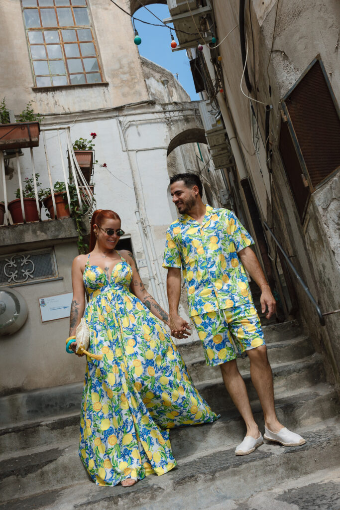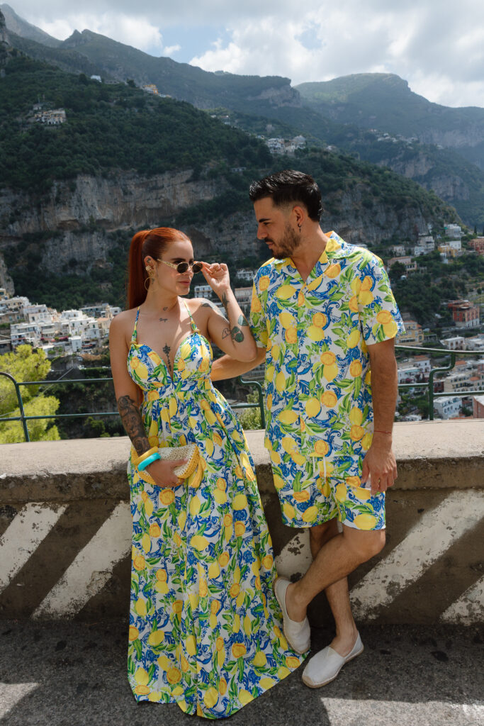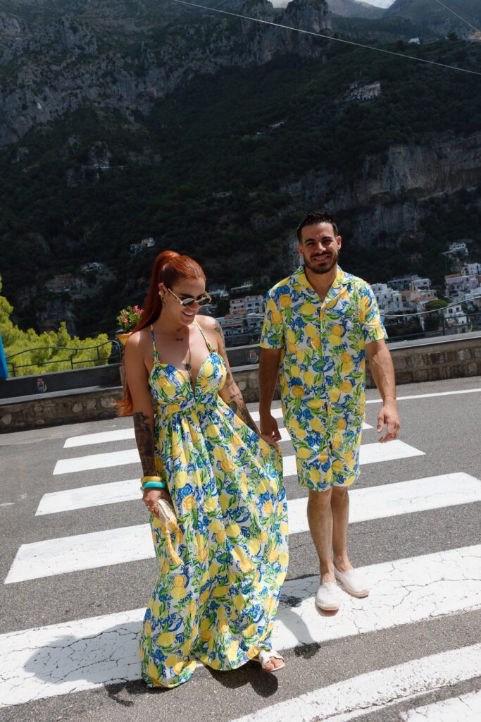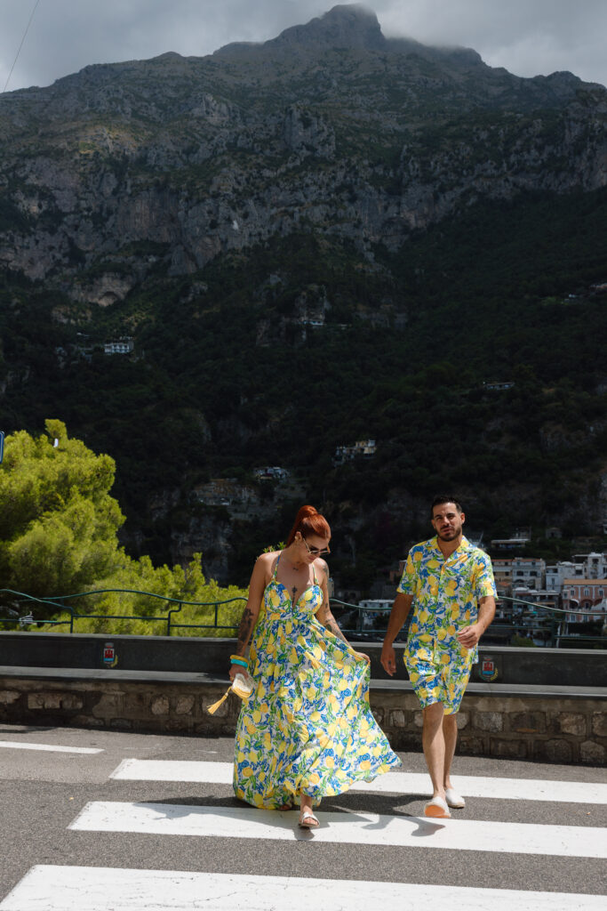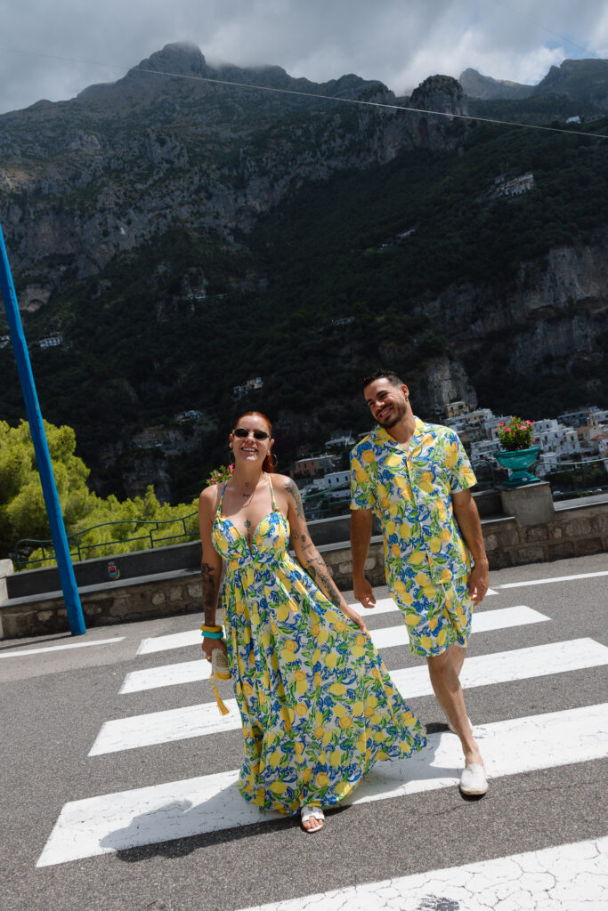 These two showed up in matching lemon-print outfits (yes, truly iconic), which instantly brought the spirit of Positano to life! Their look felt like everything I adore about Italy! It was bold, colorful, iconic, and full of character. It was giving everything dreamy, where editorial meets vacation.