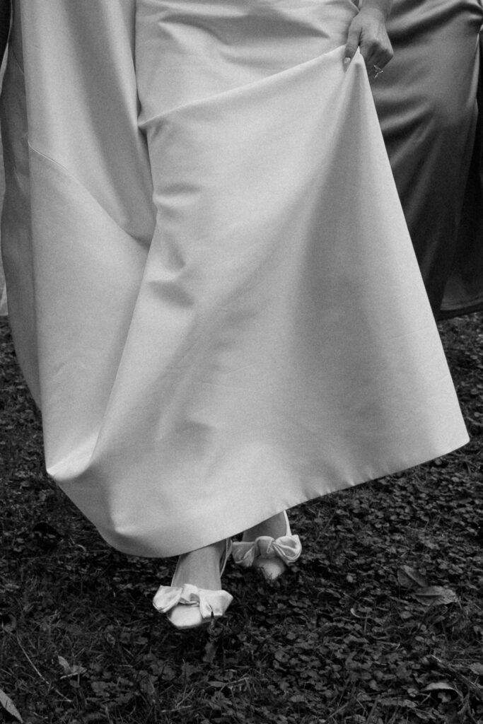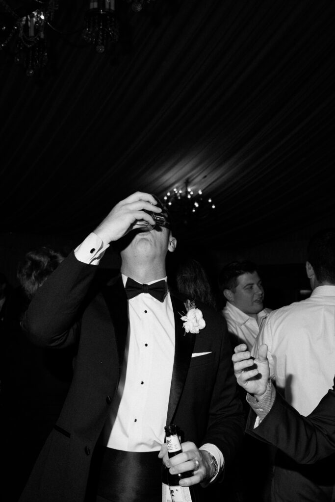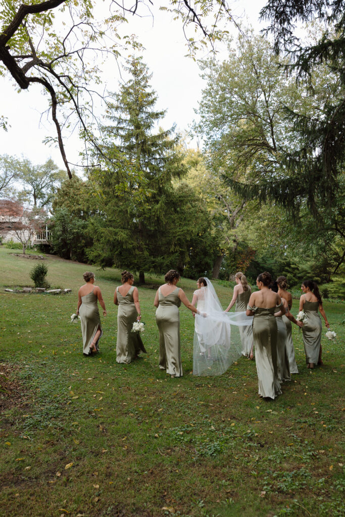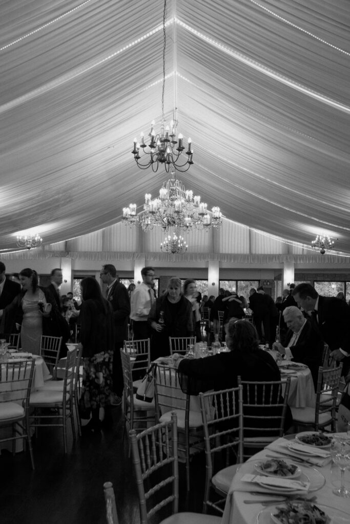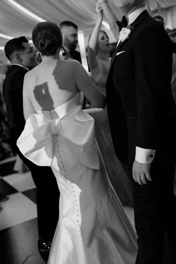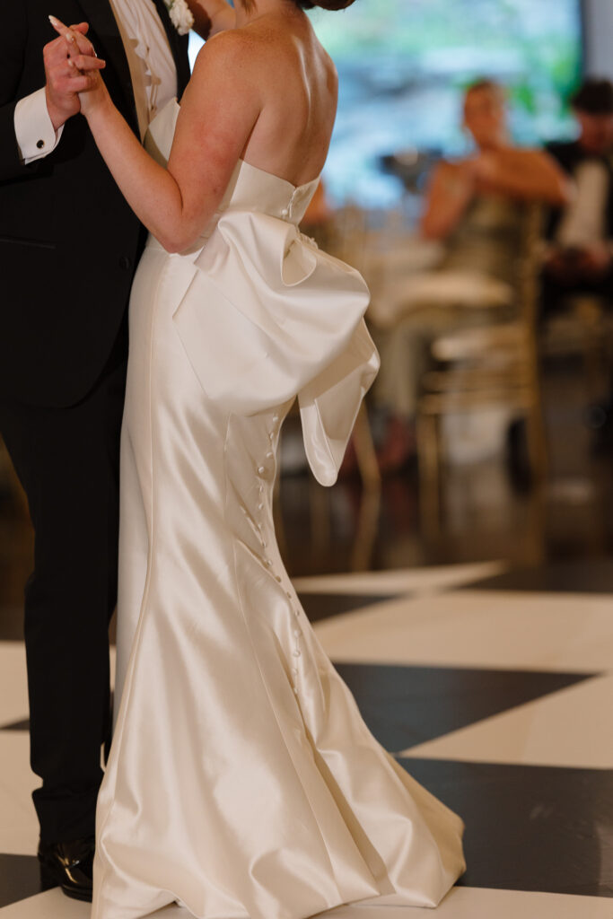 Guests enjoyed an outdoor cocktail hour on the property, savoring the peaceful gardens, string lights, and watching the perfect fall sunset. As evening approached, the reception tent came alive with glowing candlelit tables, sweeping drapery, sparkling chandeliers, and a stunning black-and-white checkerboard dance floor that made the entire room feel editorial and romantic. Every detail felt genuine, elevated, and filled with love and celebration.