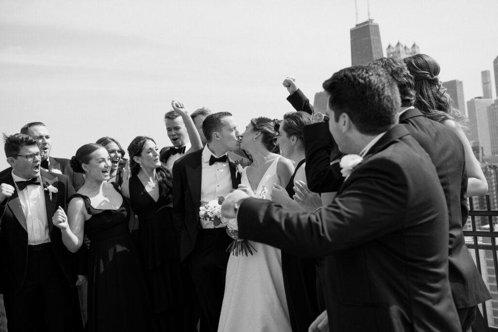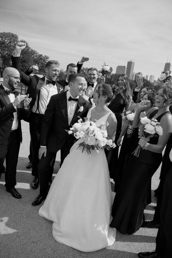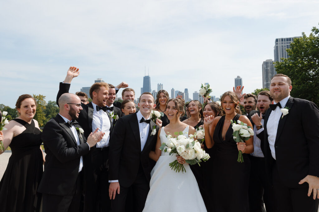 Nicole began her morning at the Ambassador Hotel before meeting Zach, who got ready at their apartment, for a rooftop first look overlooking the Chicago skyline. From there, we headed to Lincoln Park for portraits filled with sunshine, laughter, and a wedding party that brought all the hype.