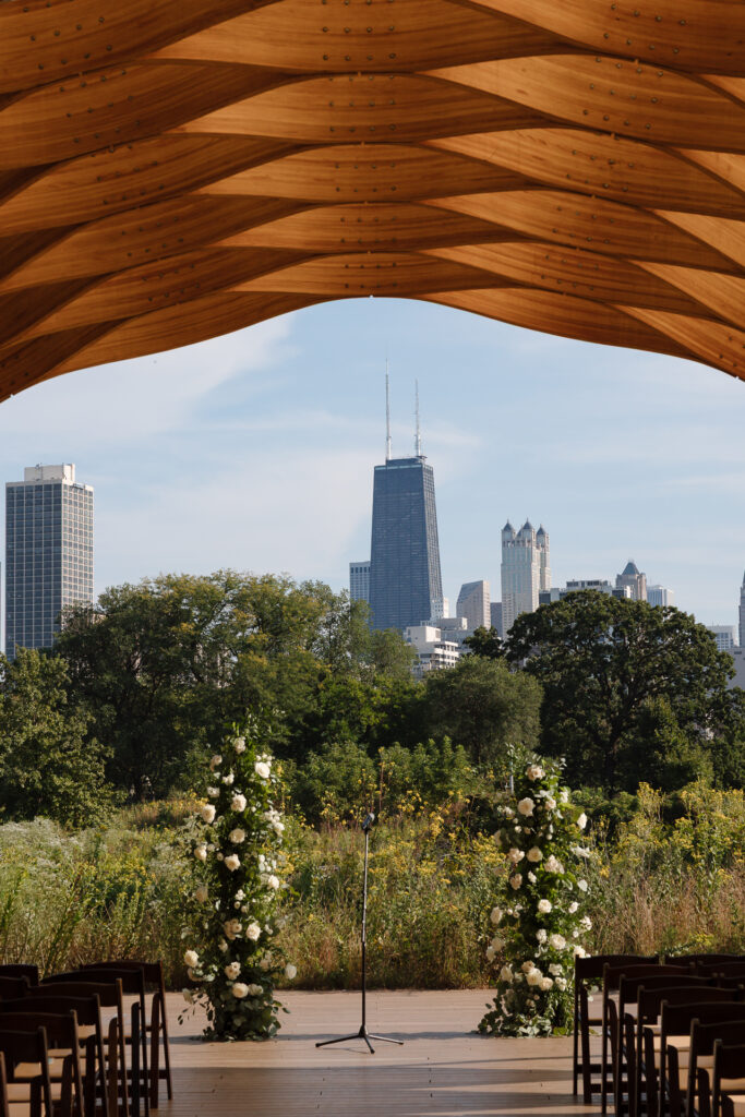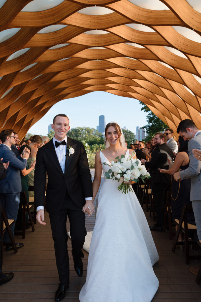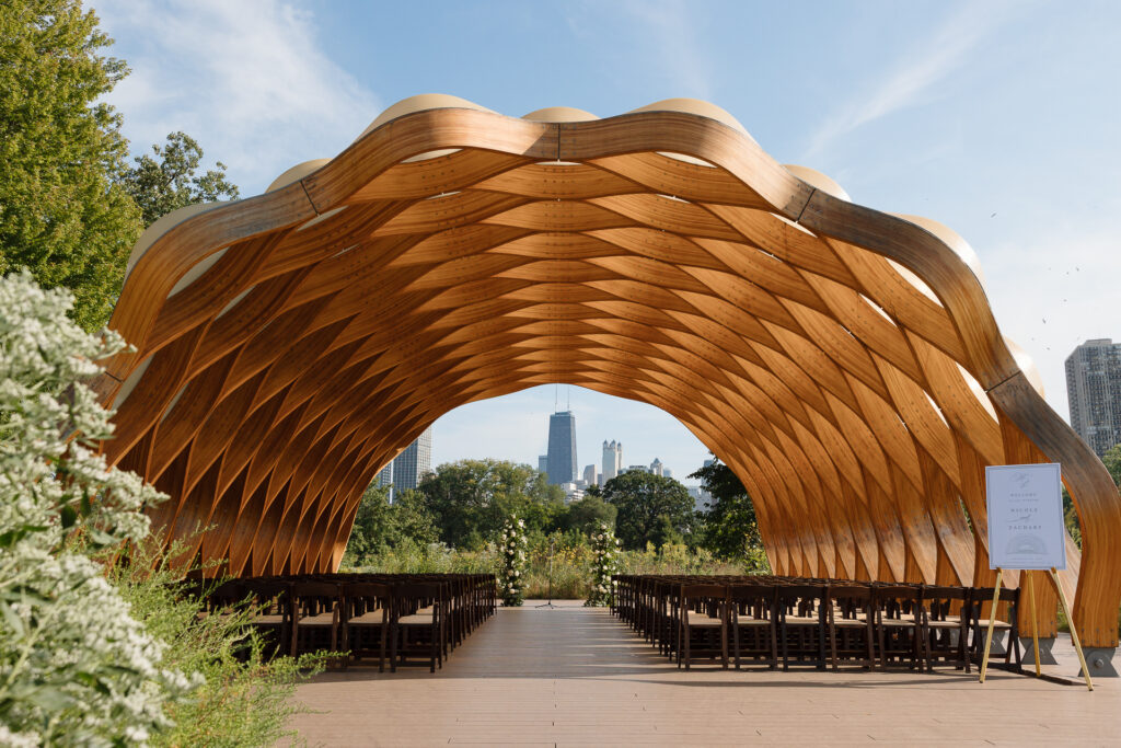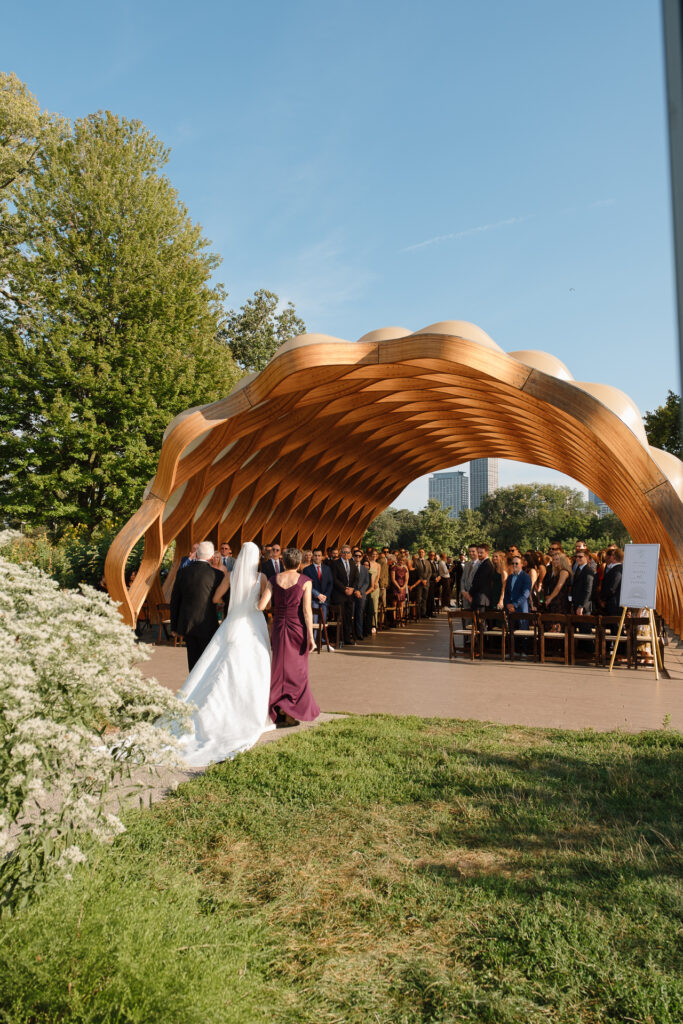 Their ceremony took place beneath the honeycomb in Lincoln Park, the very spot where Nicole’s parents were married over 30 years ago. That legacy made the moment even more meaningful, layering their vows with history, family, and intention.