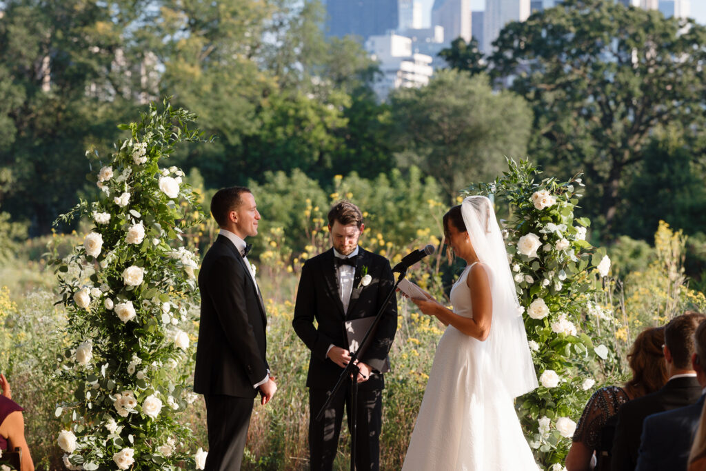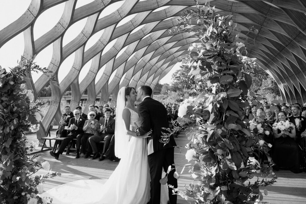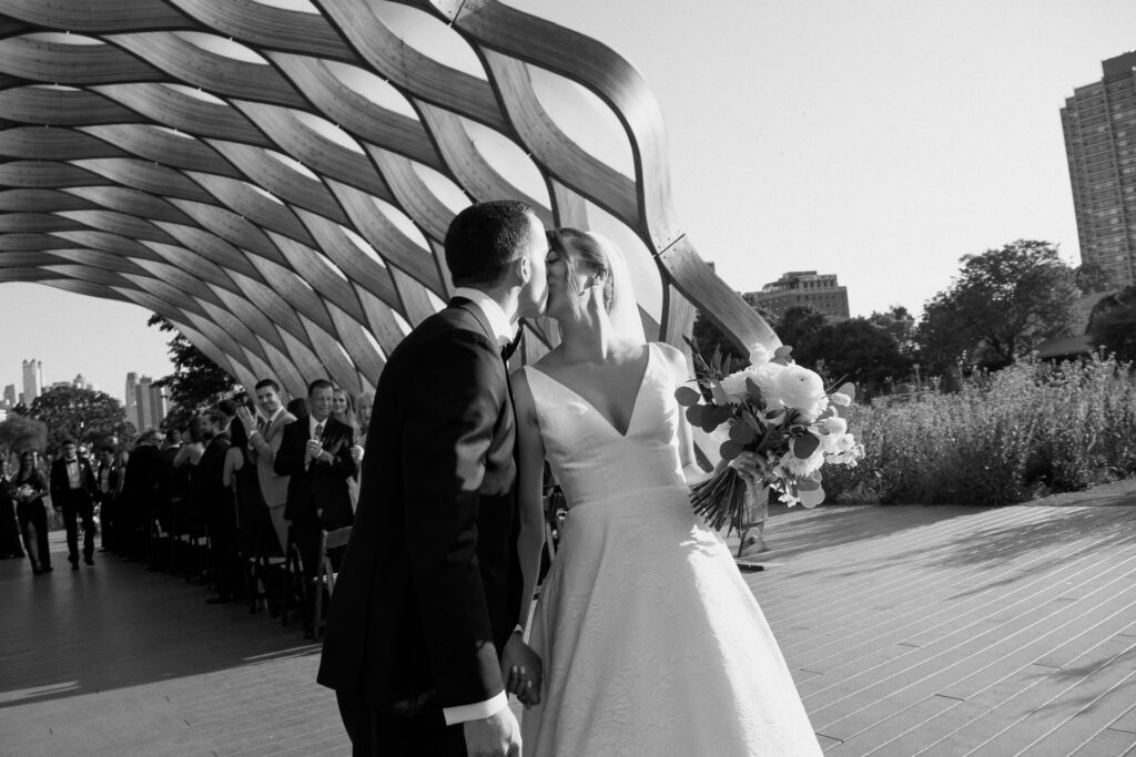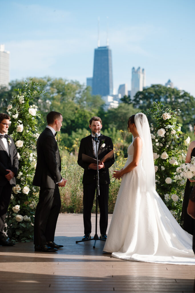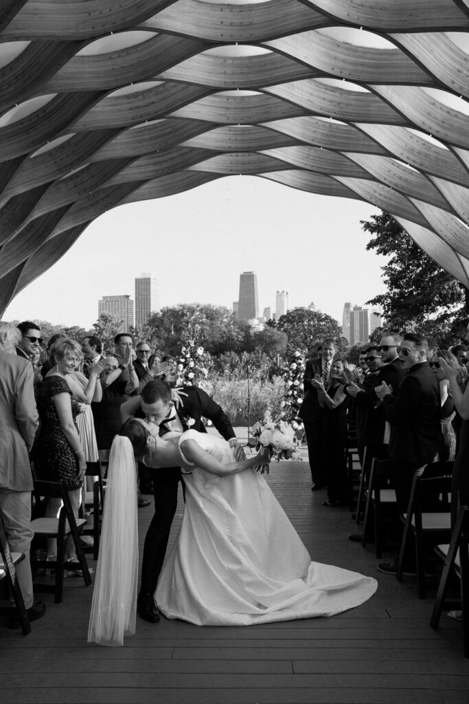 Their ceremony took place beneath the honeycomb in Lincoln Park, the very spot where Nicole’s parents were married over 30 years ago. That legacy made the moment even more meaningful, layering their vows with history, family, and intention.