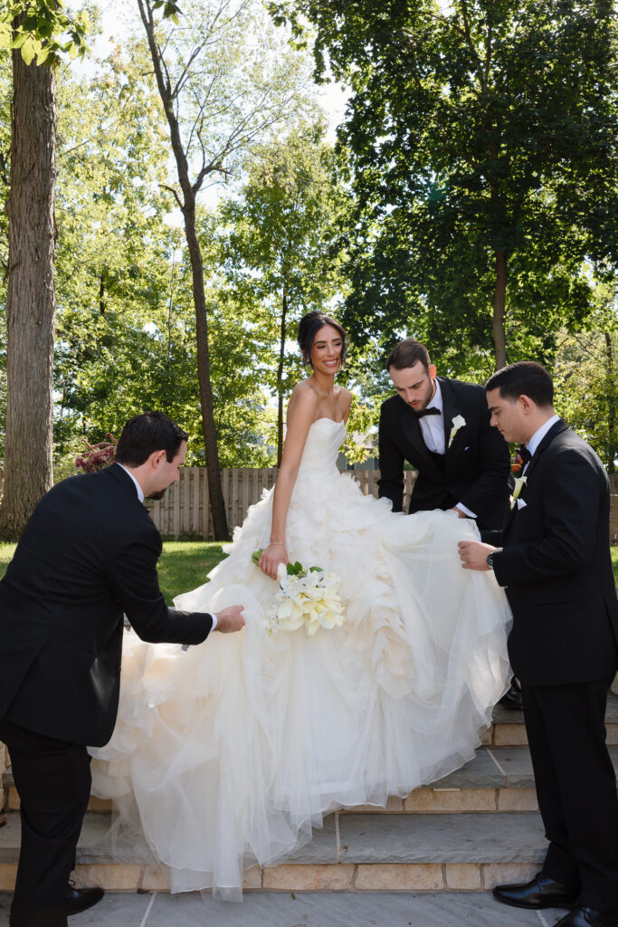 The beaming bride, Mia, wore a couture Vera Wang gown that was absolutely stunning. It was a bold, fashion-forward choice — and if anyone could embody a Vera Wang couture moment so effortlessly, it was Mia.